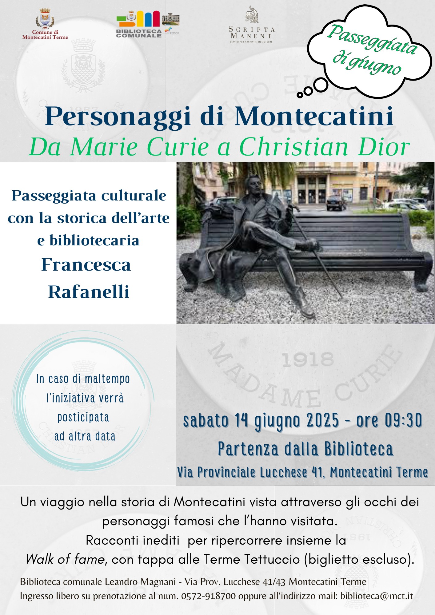 Ritrovo: sabato 14 giugno alle ore 9.30 presso la Biblioteca Leandro Magnani, via lucchese 41 – Montecatini Terme