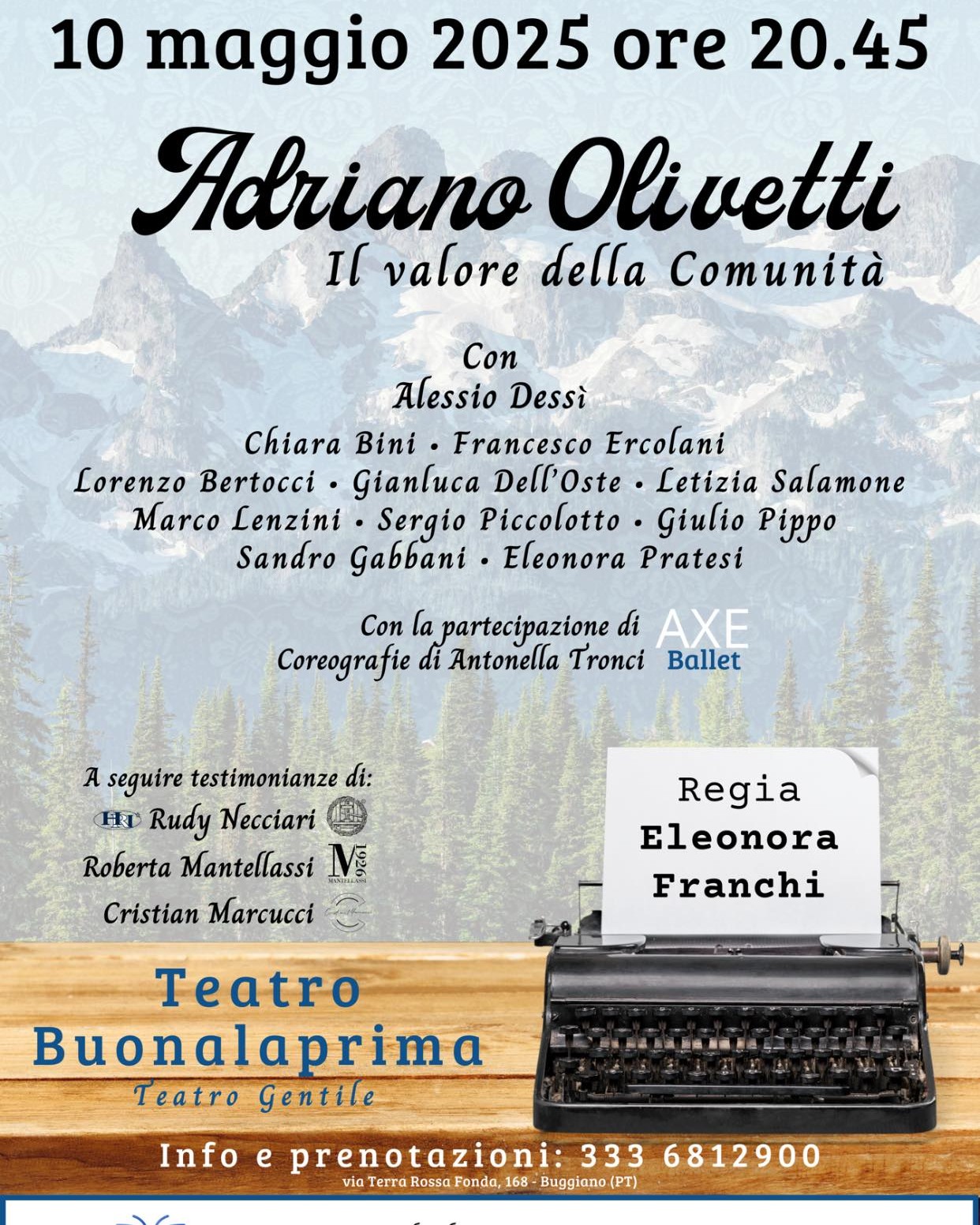 Sabato 10 maggio 2025, alle ore 20.45, presso il Teatro Buonalaprima, incontro Adriano Olivetti. Il valore della Comunità.