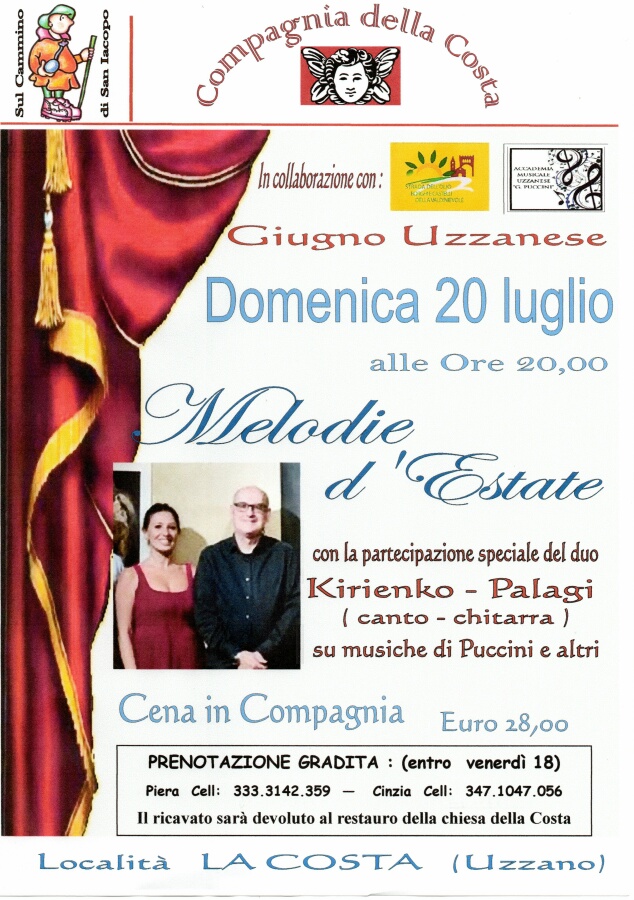 Domenica 20 luglio 2025, alle ore 20, Cena in Compagnia organizzata dalla Compagnia della Costa presso l’azienda agricola Podere la Costa, il cui ricavato sarà devoluto al restauro della chiesa di La Costa.