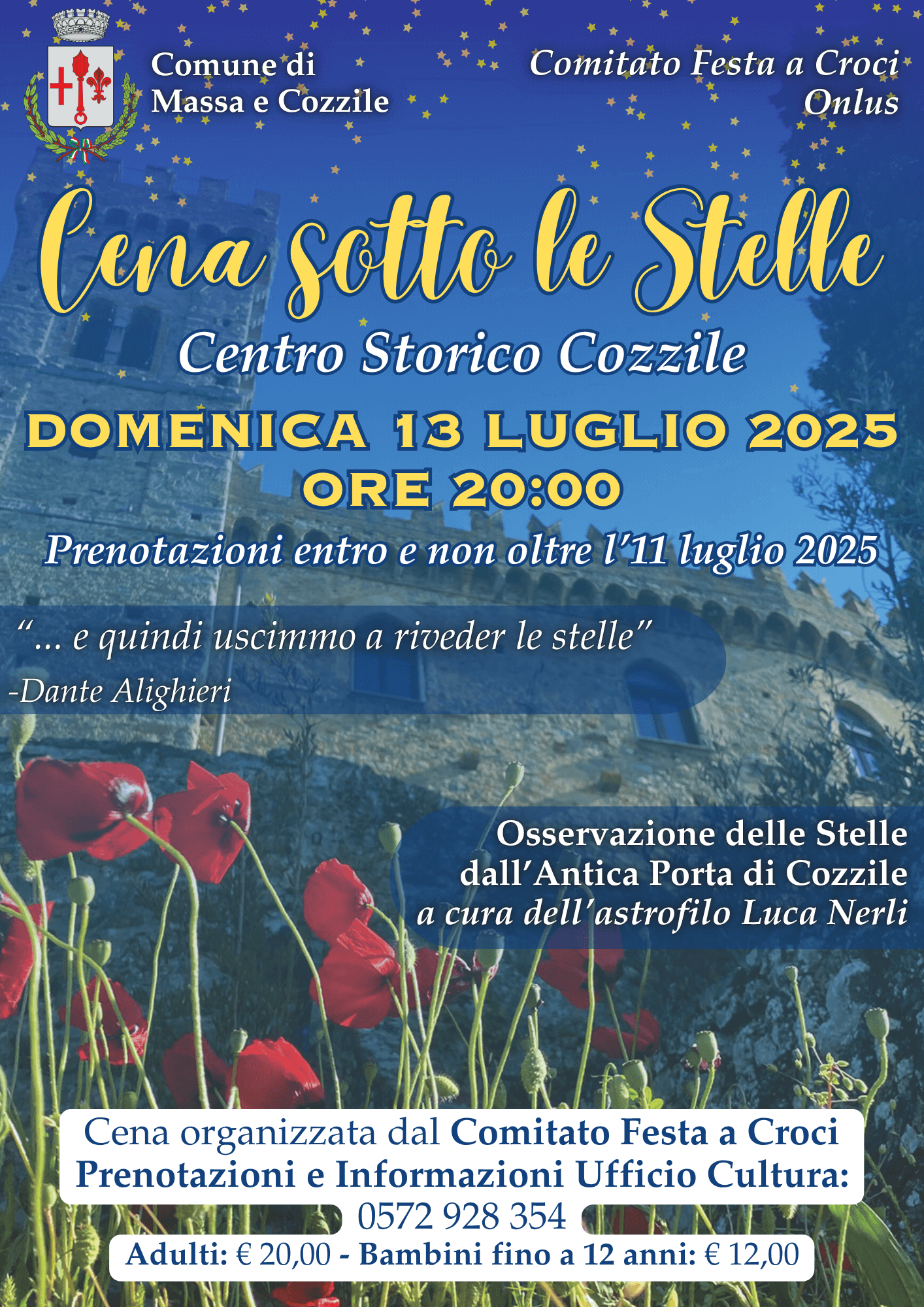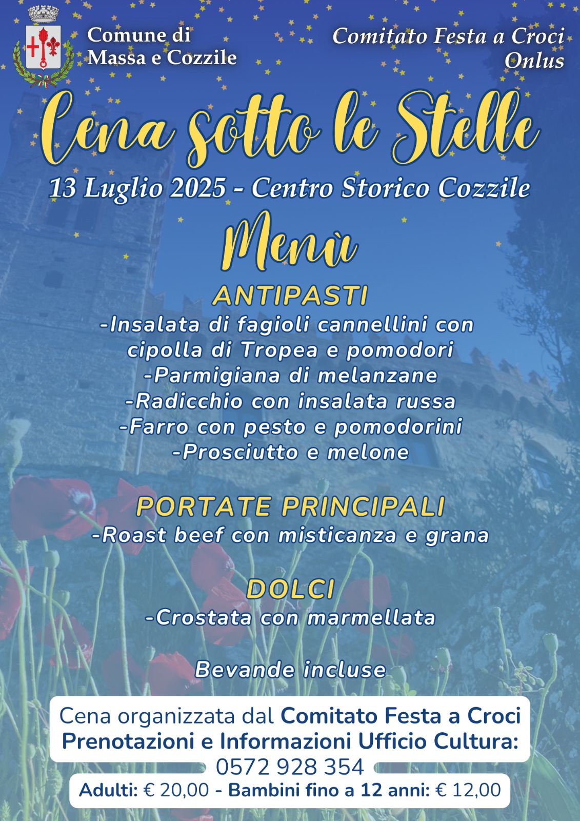 Domenica 13 luglio 2025, alle ore 20, presso Piazza del Pozzo a Cozzile, appuntamento con Cena sotto le Stelle: una serata all’insegna della convivialità, per riscoprire il fascino di uno dei borghi più incantati della Valdinievole.