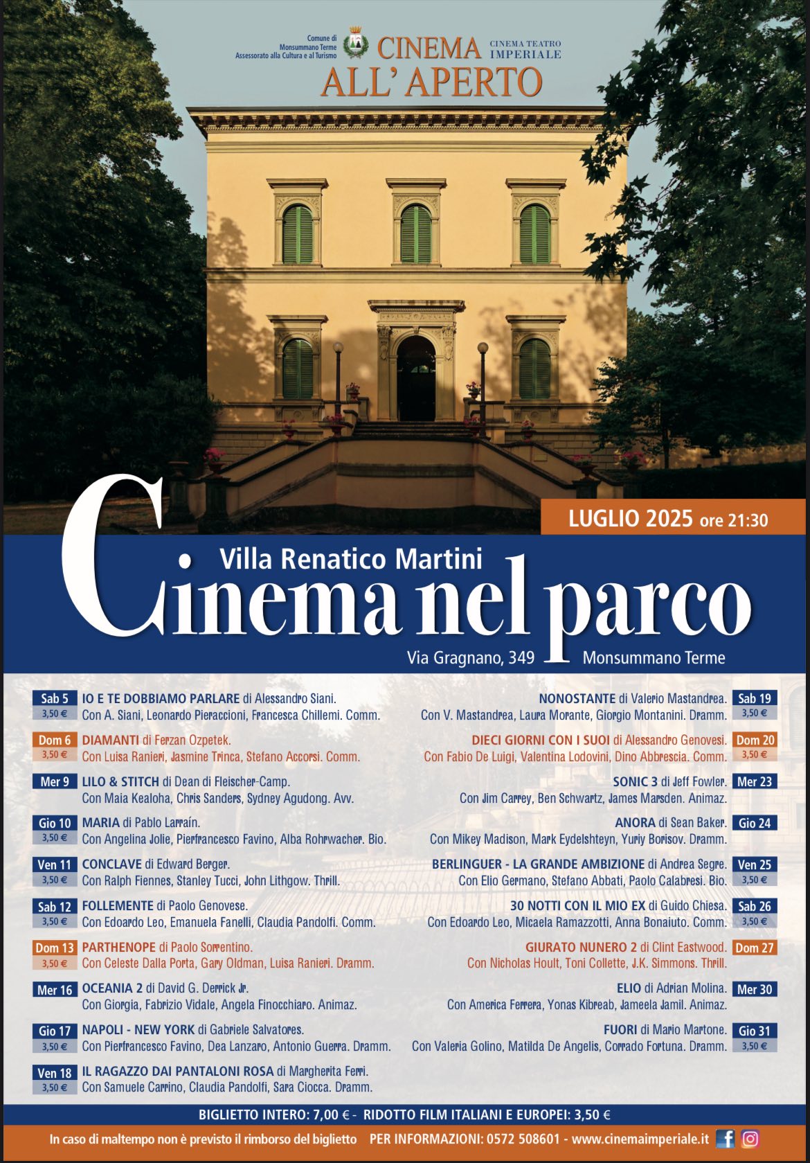 Anche quest’anno, il Parco David Bowie di Villa Renatico Martini a Monsummano Terme sarà la cornice ideale per gli appuntamenti di Cinema nel Parco.