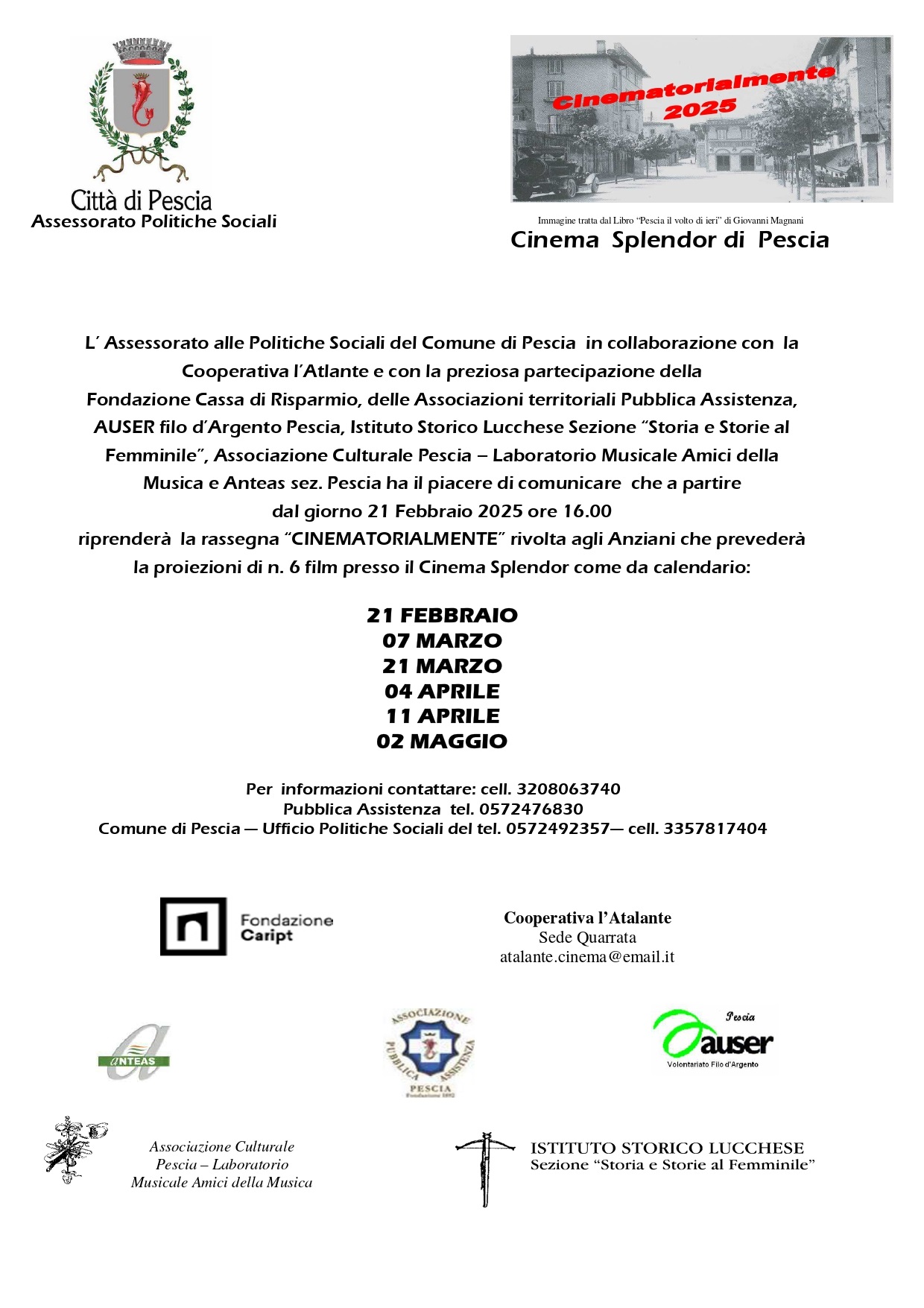 Al Cinema Splendor di Pescia torna Cinematorialmente, la rassegna cinematografica con un’ampia selezione di proiezioni. Tante occasioni per riscoprire il grande cinema.