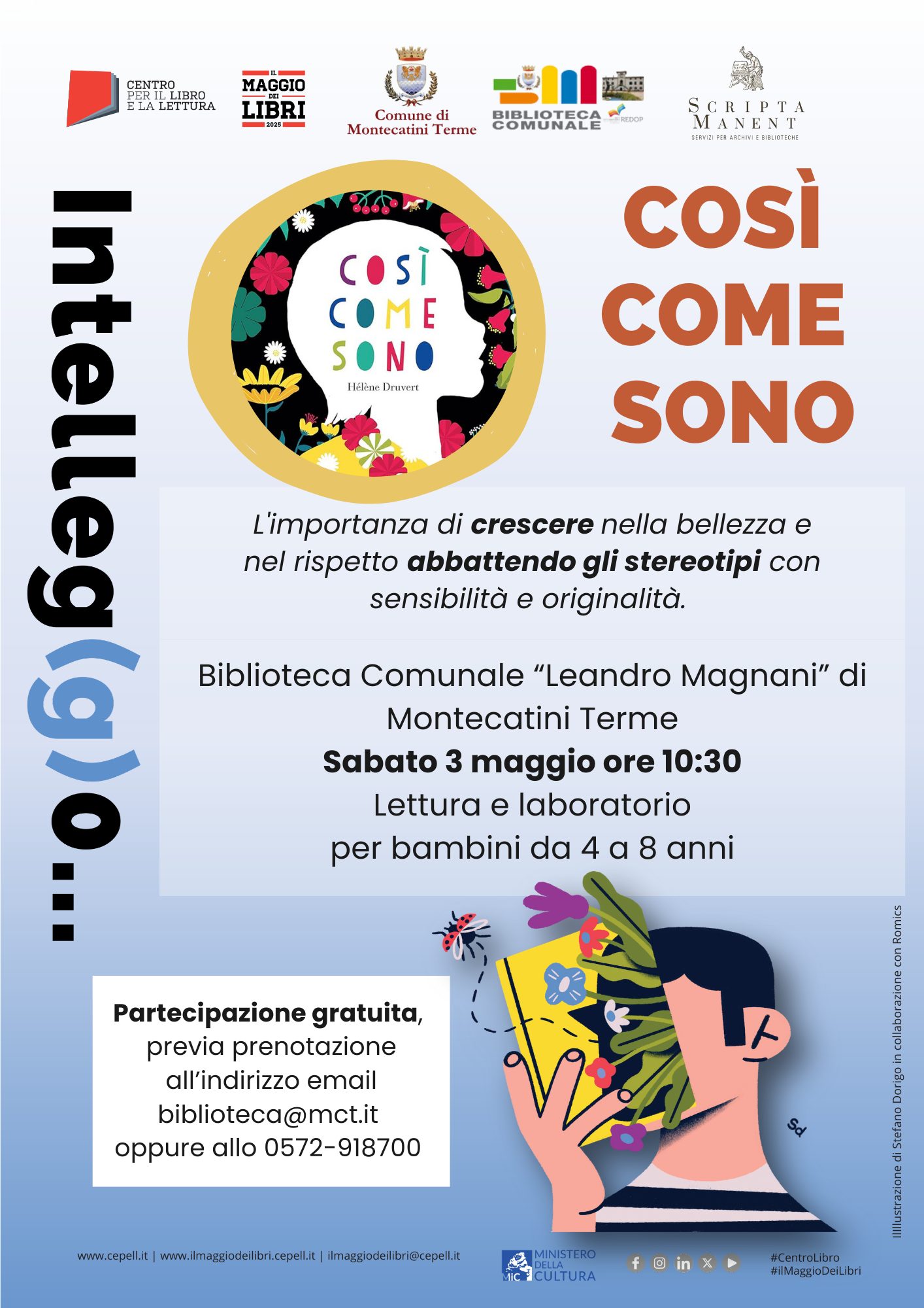 Sabato 3 maggio 2025, alle ore 10.30, presso la Biblioteca Leandro Magnani di Montecatini Terme, lettura e laboratorio per bambini dai 4 agli 8 anni dal titolo Così come sono.