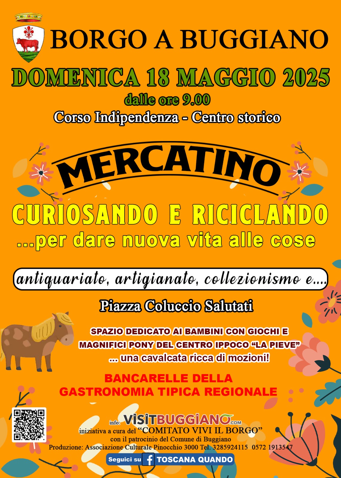 Domenica 18 maggio 2025, dalle ore 9, lungo Corso Indipendenza e il centro storico di Borgo a Buggiano, torna l’appuntamento con il mercatino Curiosando e riciclando.