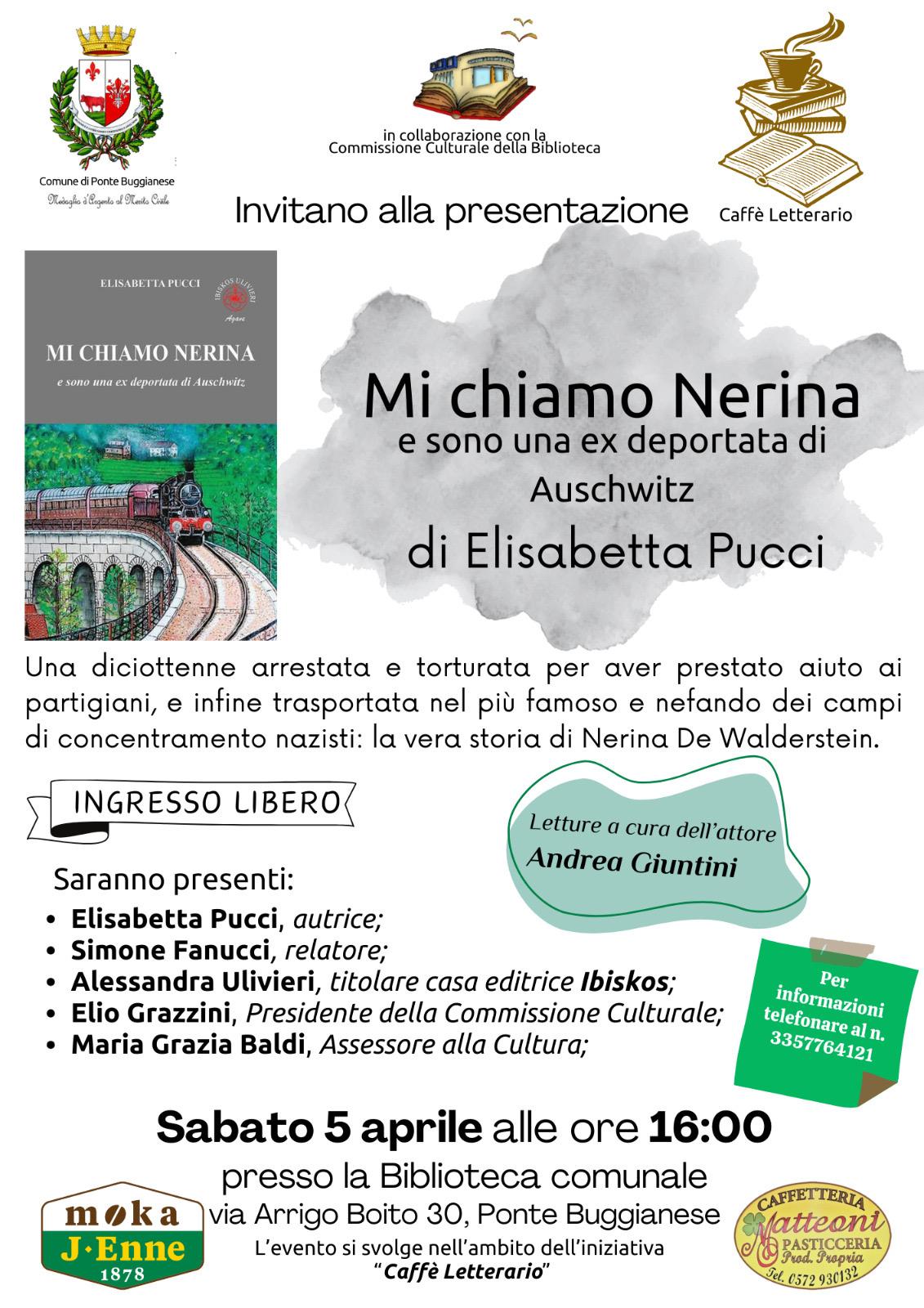 Sabato 5 aprile 2025, alle ore 16, presentazione del libro Mi chiamo Nerina e sono una ex deportata di Auschwitz di Elisabetta Pucci alla Biblioteca Comunale di Ponte Buggianese.