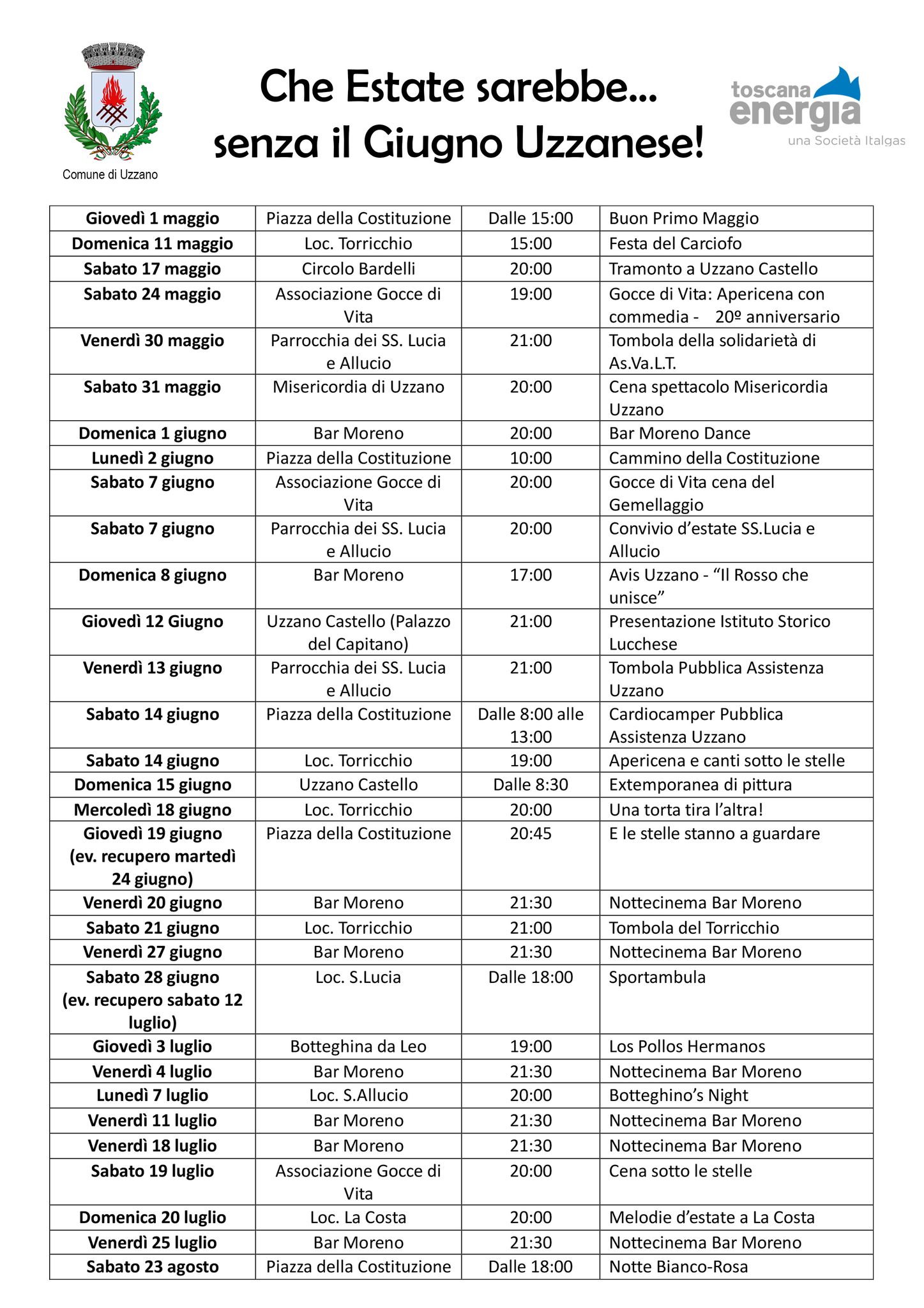 Scoprite tutti gli appuntamenti del Giugno Uzzanese