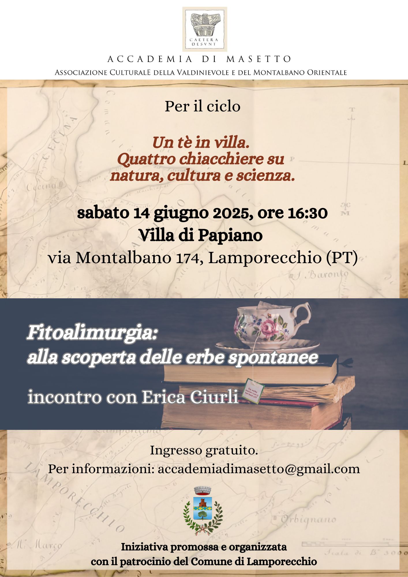 Presso la Villa di Papiano, sabato 14 giugno 2025 alle ore 16.30, si terrà il terzo incontro del ciclo Un tè in villa, dal titolo Fitoalimurgia: alla scoperta delle erbe spontanee.