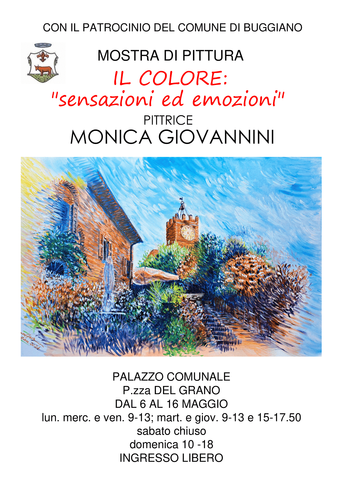 Dal 6 al 19 maggio 2025, mostra pittorica Il colore: sensazioni ed emozioni dell’artista Monica Giovannini, presso il Palazzo Comunale di Buggiano.