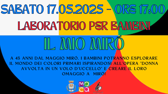 Sabato 17 maggio 2025, alle ore 17, presso la Galleria Civica Mo.C.A., a 45 anni dal Maggio Miró, i bambini potranno esplorare il mondo dei colori primari ispirandosi all’opera Dona Voltada d’un Vol d’Ocells e creare il loro personale omaggio a Joan Miró.