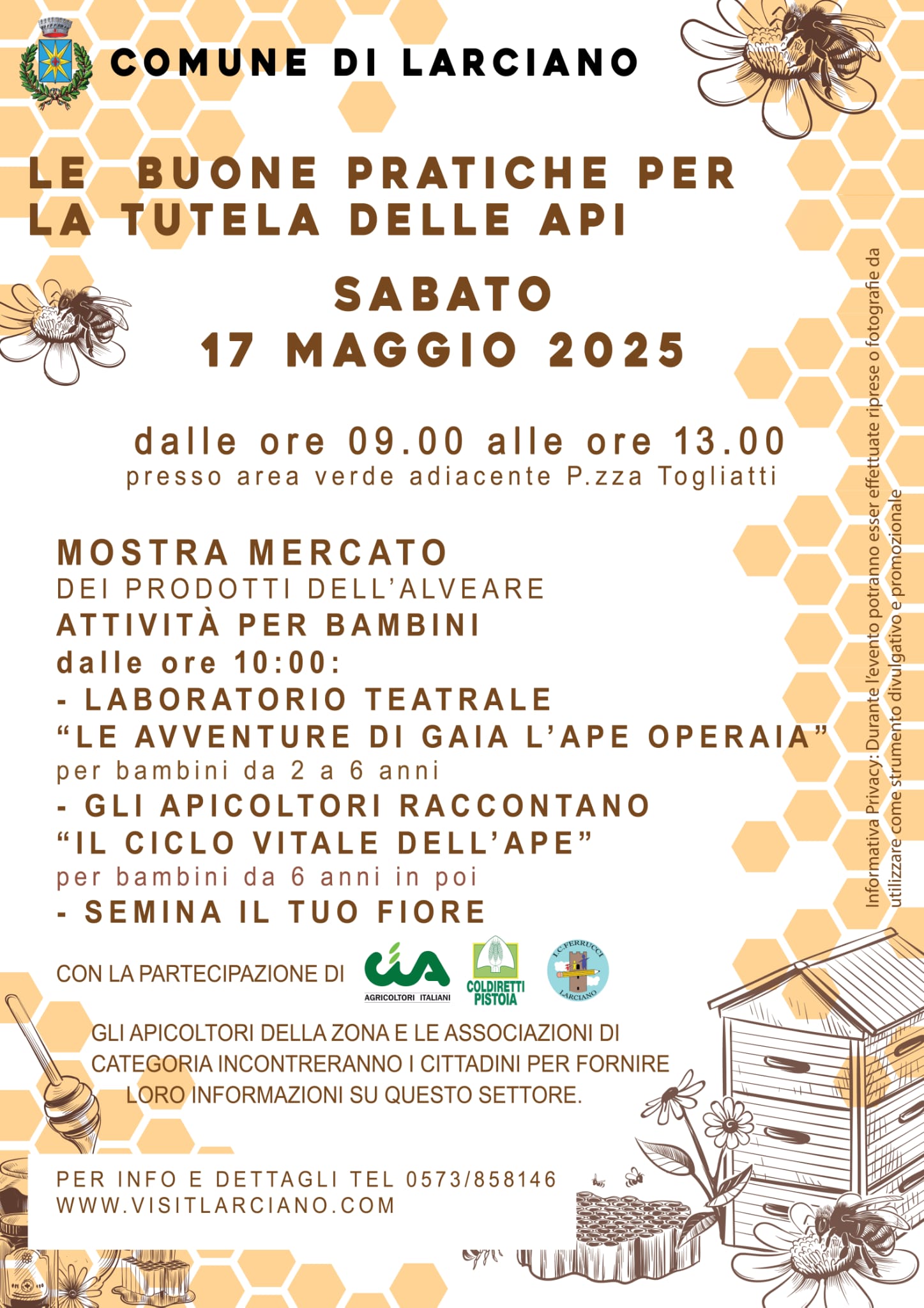 Sabato 17 maggio 2025, dalle 9 alle 13, presso l’area verde adiacente a Piazza Togliatti a Larciano, si terrà l’iniziativa Le buone pratiche per la tutela delle api, una mattinata dedicata alla sensibilizzazione sul ruolo fondamentale di questi insetti per l’equilibrio ambientale.