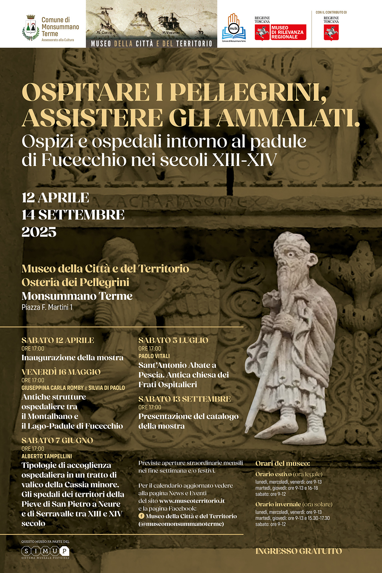 Da sabato 12 aprile a domenica 14 settembre 2025, presso il Museo della Città e del Territorio, mostra temporanea Ospitare i pellegrini, assistere gli ammalati. Ospizi e ospedali intorno al padule di Fucecchio nei secoli XIII – XIV.