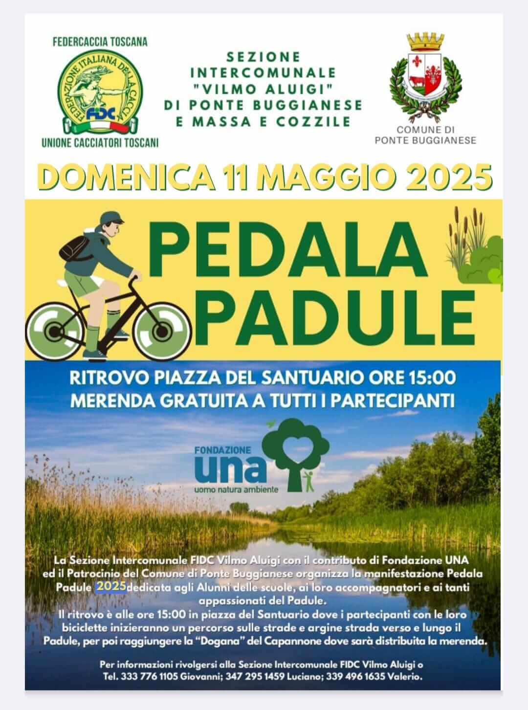 L’evento si svolgerà domenica 11 maggio 2025, con ritrovo alle ore 14.30 presso piazza del Santuario a Ponte Buggianese. Il percorso si snoderà tra strade, argini e sentieri bianchi del territorio, con l’accompagnamento di guide esperte.