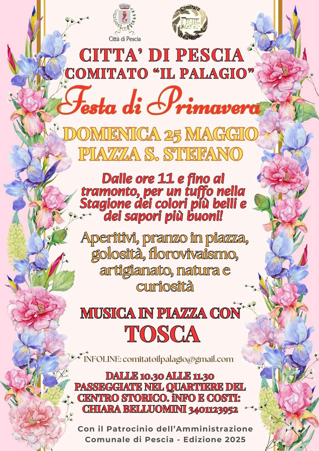 Domenica 25 maggio 2025, in Piazza Santo Stefano a Pescia, torna la tanto attesa Festa di Primavera, una giornata ricca di colori, sapori e allegria.
