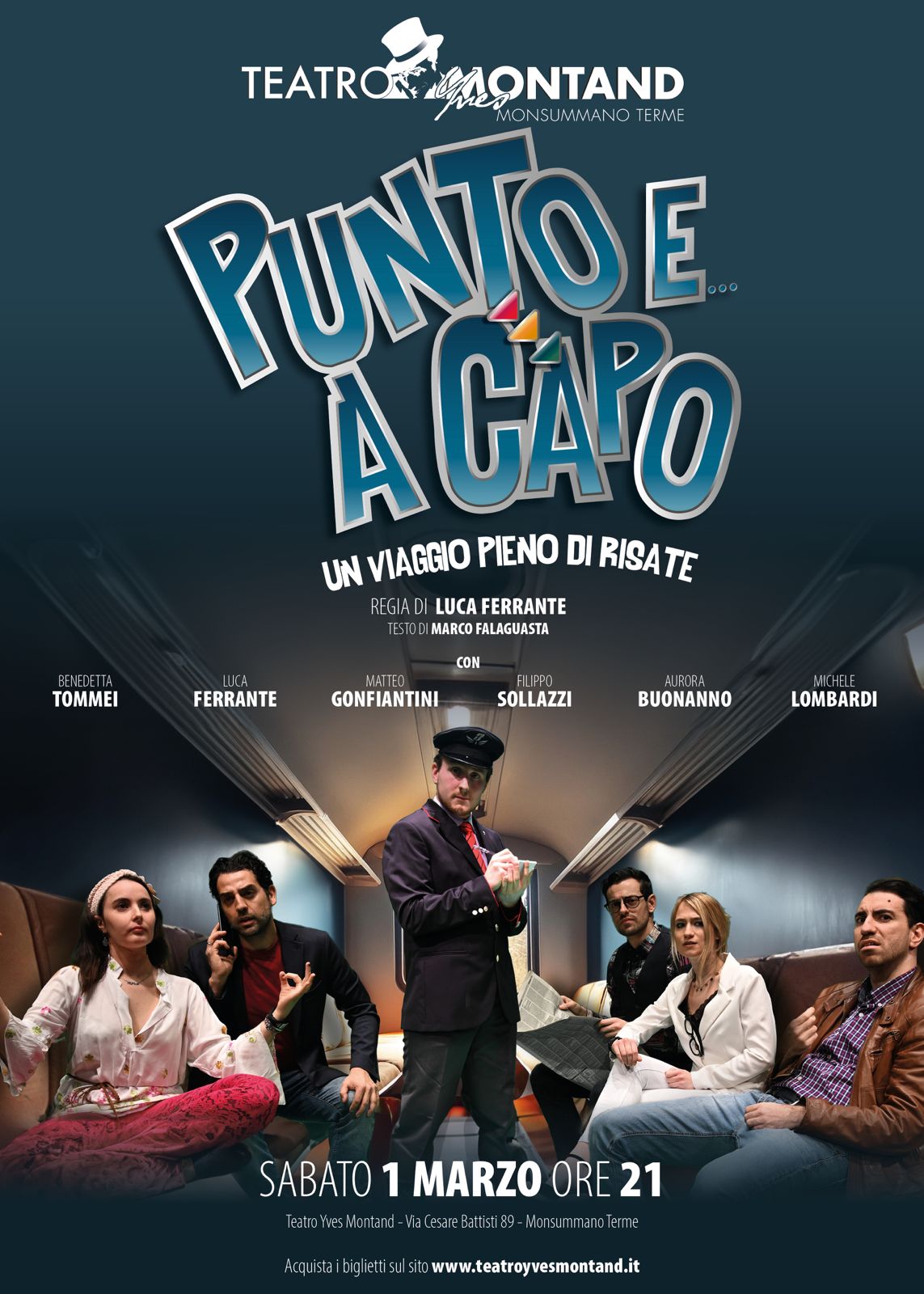 Sabato 1 marzo 2025, alle ore 21, sul palco del Teatro Yves Montand di Monsummano Terme, va in scena Punto e a capo. Un viaggio pieno di risate, commedia di Marco Falaguasta. Regia di Luca Ferrante.