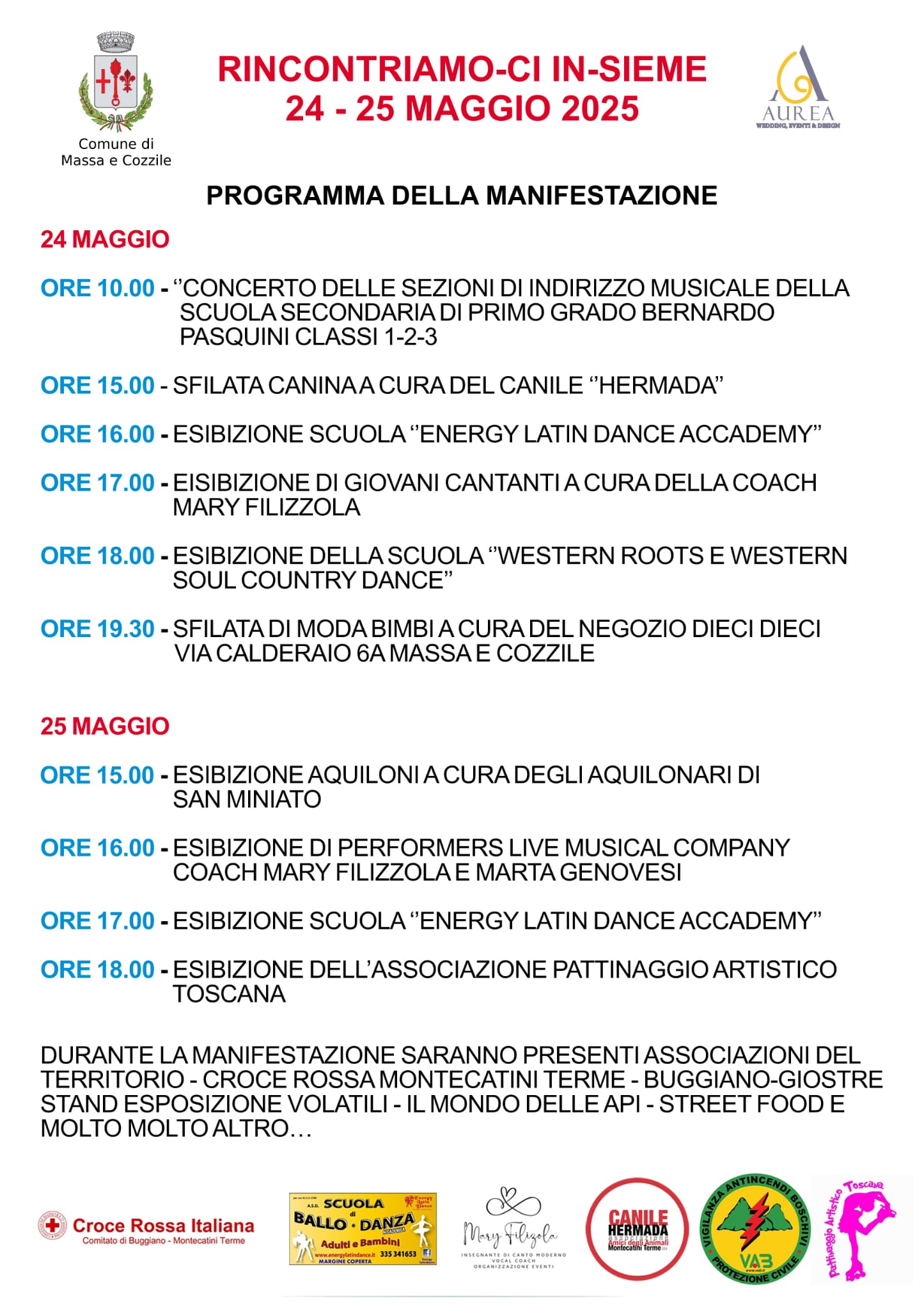 Sabato 24 e domenica 25 maggio 2025, presso il Verde Pubblico Giulio Stefanelli di Traversagna (Massa e Cozzile), partecipante all’iniziativa Riscopriamo-CI IN-sieme. Due giornate all’insegna del divertimento, della scoperta e della partecipazione, con un programma ricco di eventi e attività pensate in particolare per bambini e ragazzi.
