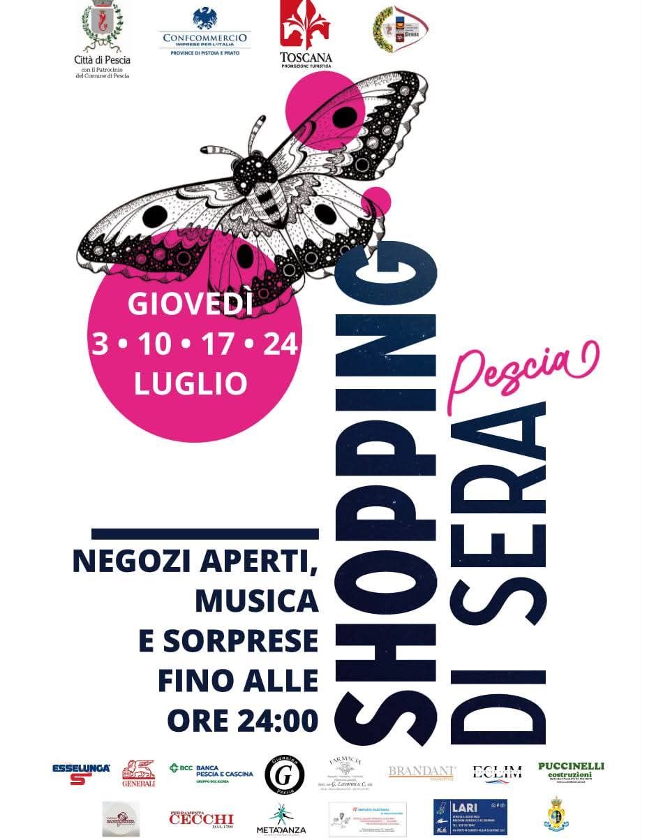 Tornano le serate estive a Pescia, con le attività commerciali aperte fino a mezzanotte e intrattenimenti di ogni genere. Ogni appuntamento sarà dedicato a un tema diverso.
