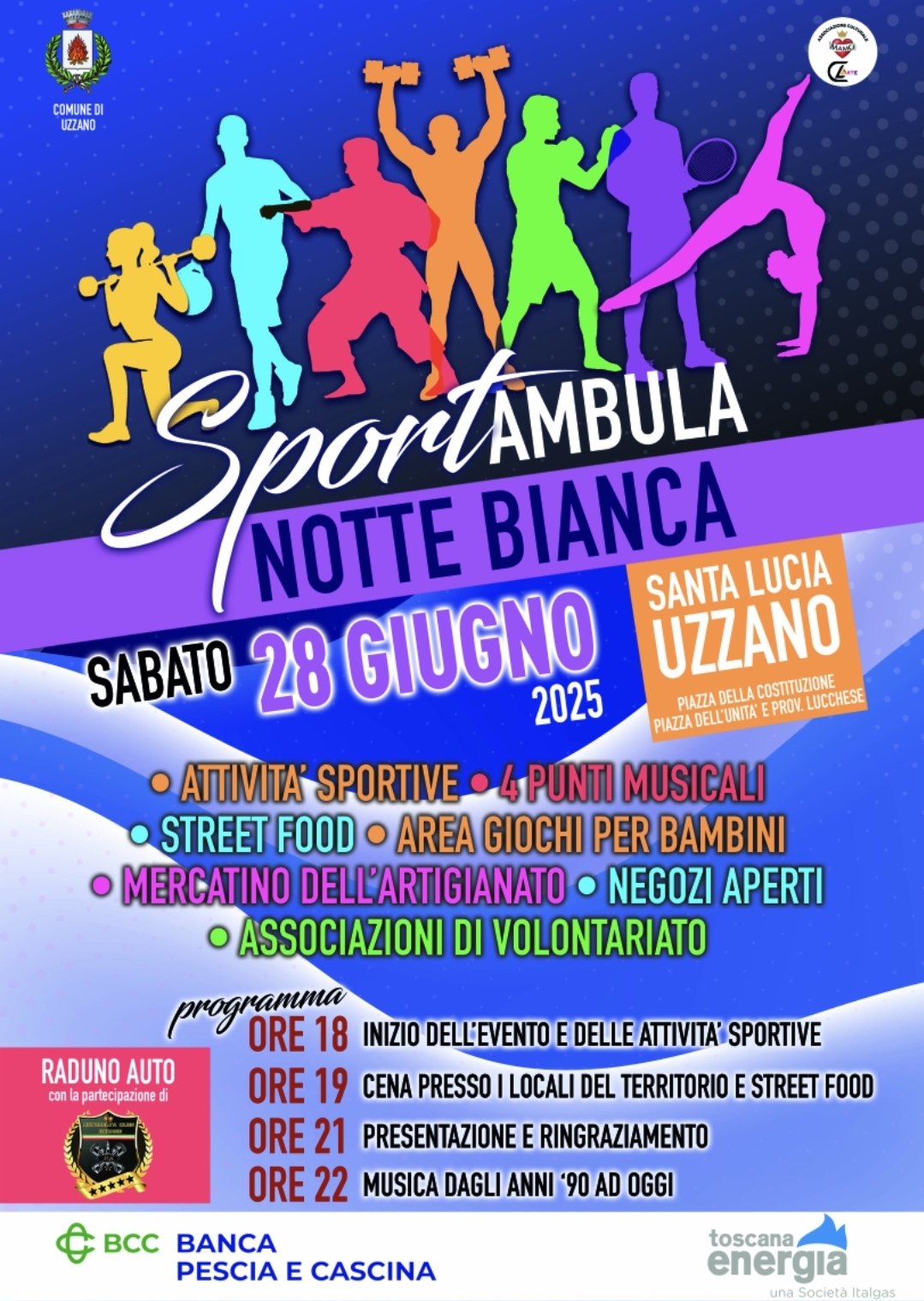 Sabato 28 giugno 2025, a Uzzano, torna l’appuntamento con Sportambula – Notte Bianca, una serata all’insegna dello sport, della musica, della condivisione e del divertimento per tutta la famiglia.
