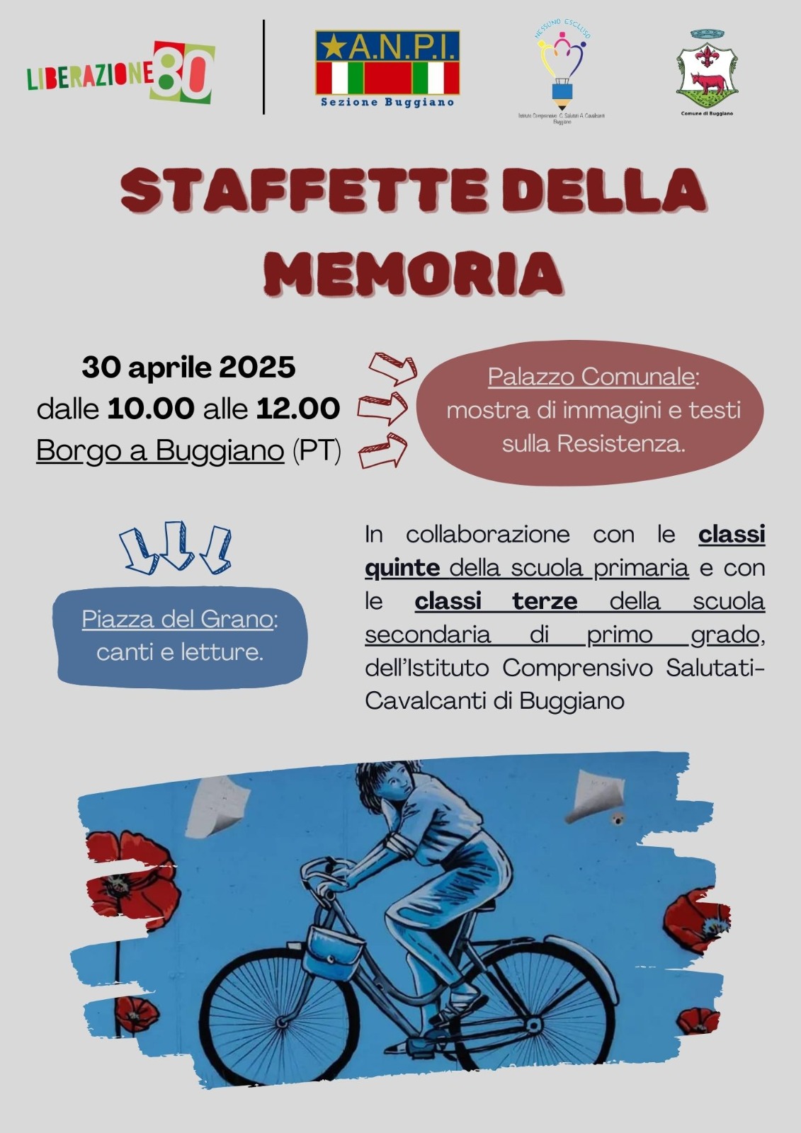 Sabato 30 aprile 2025, dalle 10 alle 12, Staffette della memoria a Borgo a Buggiano per una mattinata dedicata al ricordo e alla testimonianza,