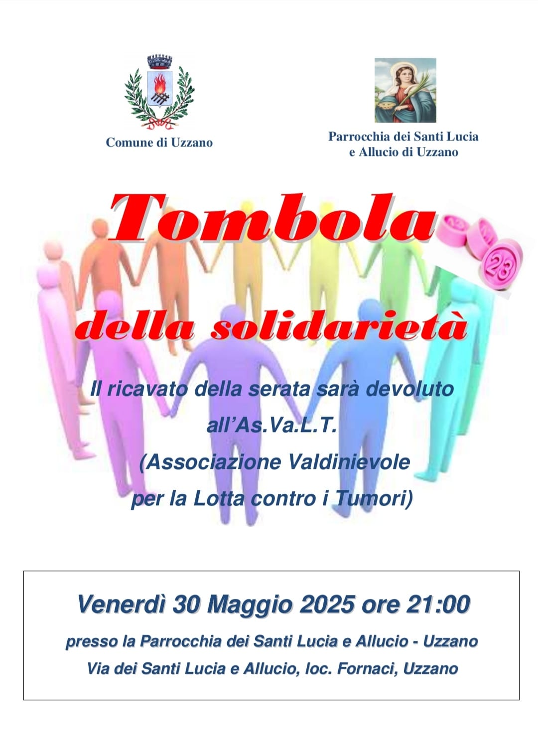 Venerdì 30 maggio 2025, per il Giugno Uzzanese, una serata speciale con la Tombola della Solidarietà, un’occasione per stare insieme e fare del bene.