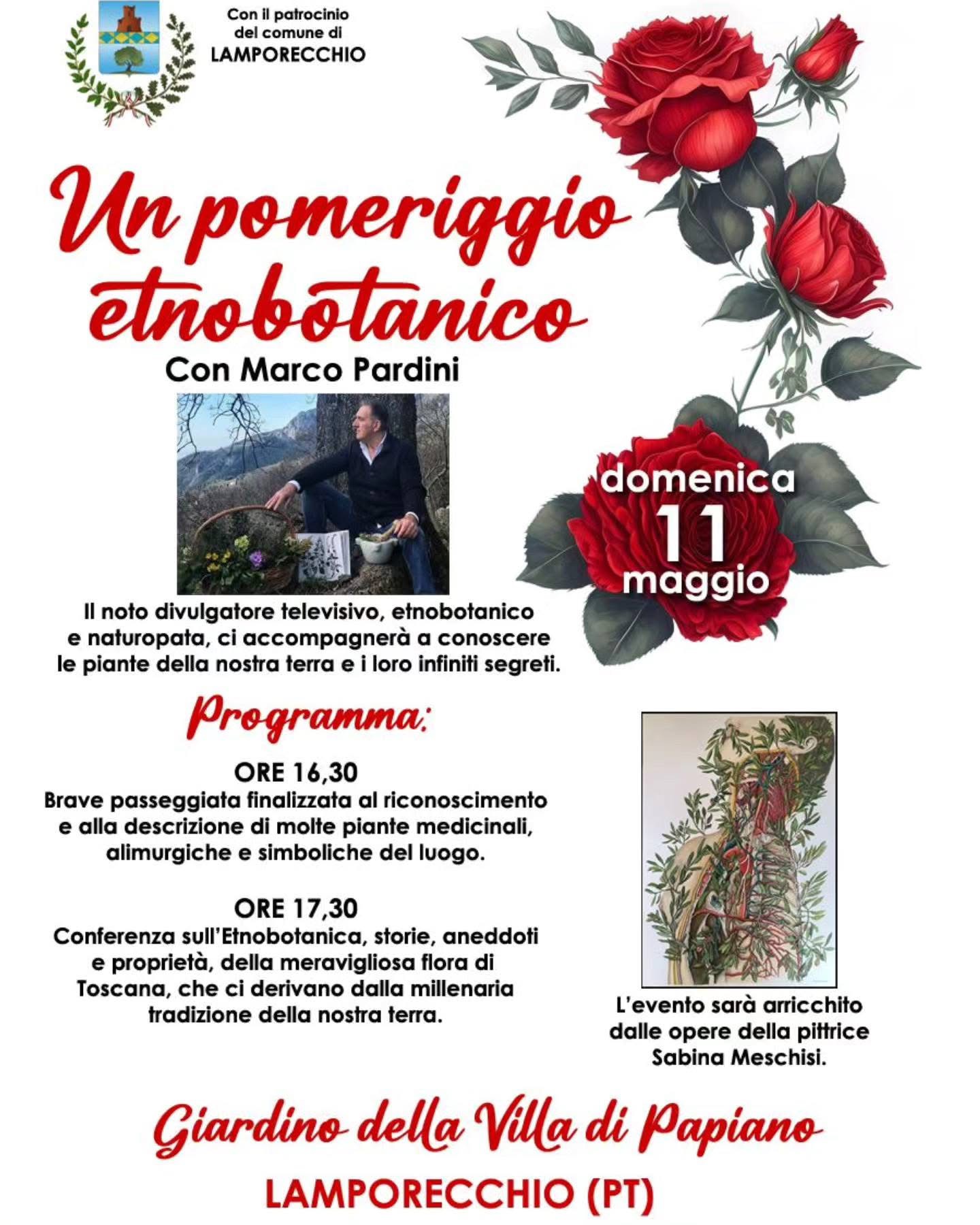 Un pomeriggio etnobotanico con Marco Pardini al giardino della Villa di Papiano a Lamporecchio, domenica 11 maggio 2025. Il noto divulgatore televisivo vi accompagnerà alla scoperta del territorio.